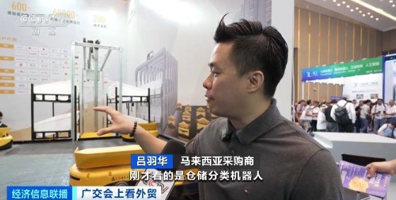 马来西亚采购商吕羽华:刚才看到的是一个仓储分类机器人,我今天过来,主要是看什么样的数字技术可以带回马来西亚。马来西亚企业平时很会做营销,仓储的部分如果太依赖人力,会遇到人力的管理问题。如果用机器人,就可以降低沟通成本、时间成本。