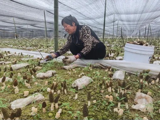 近日,城固县董家营镇的羊肚菌基地迎来丰收。
