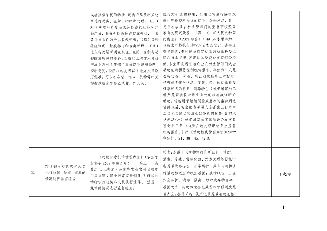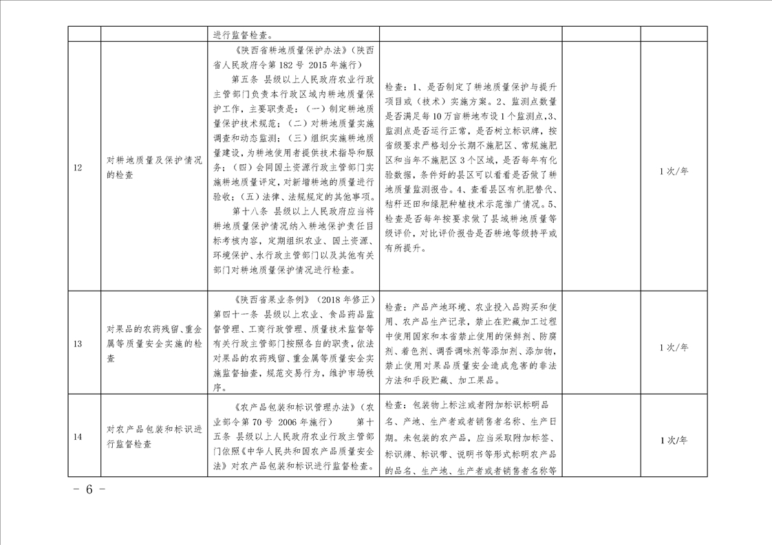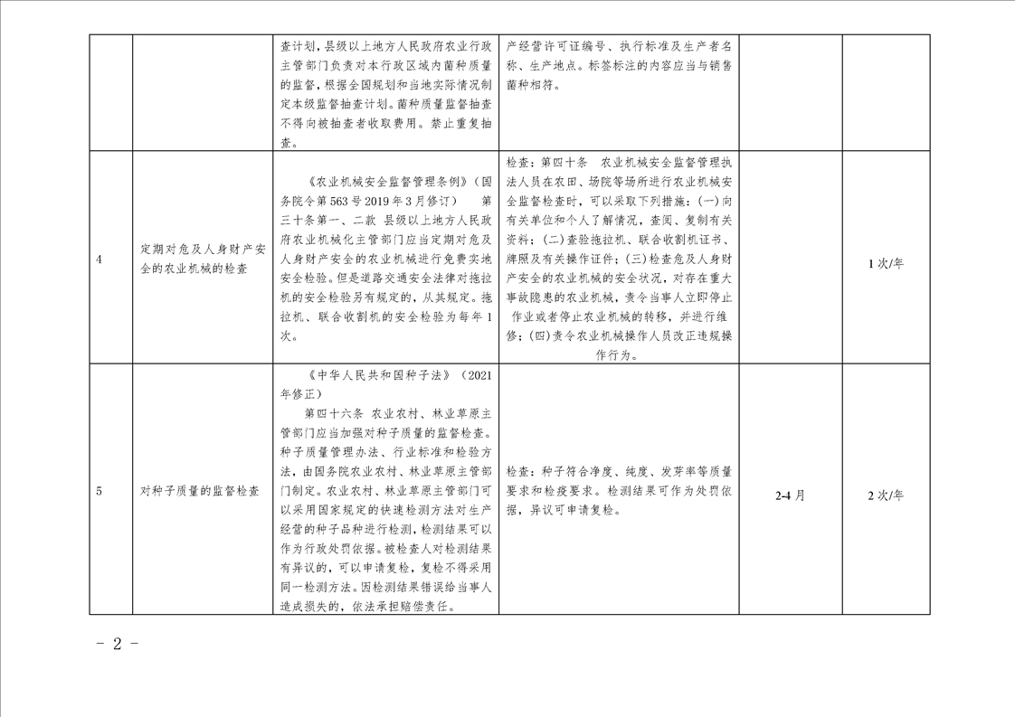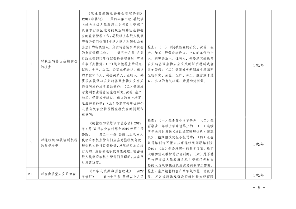 汉中市农业农村局行政检查事项目录