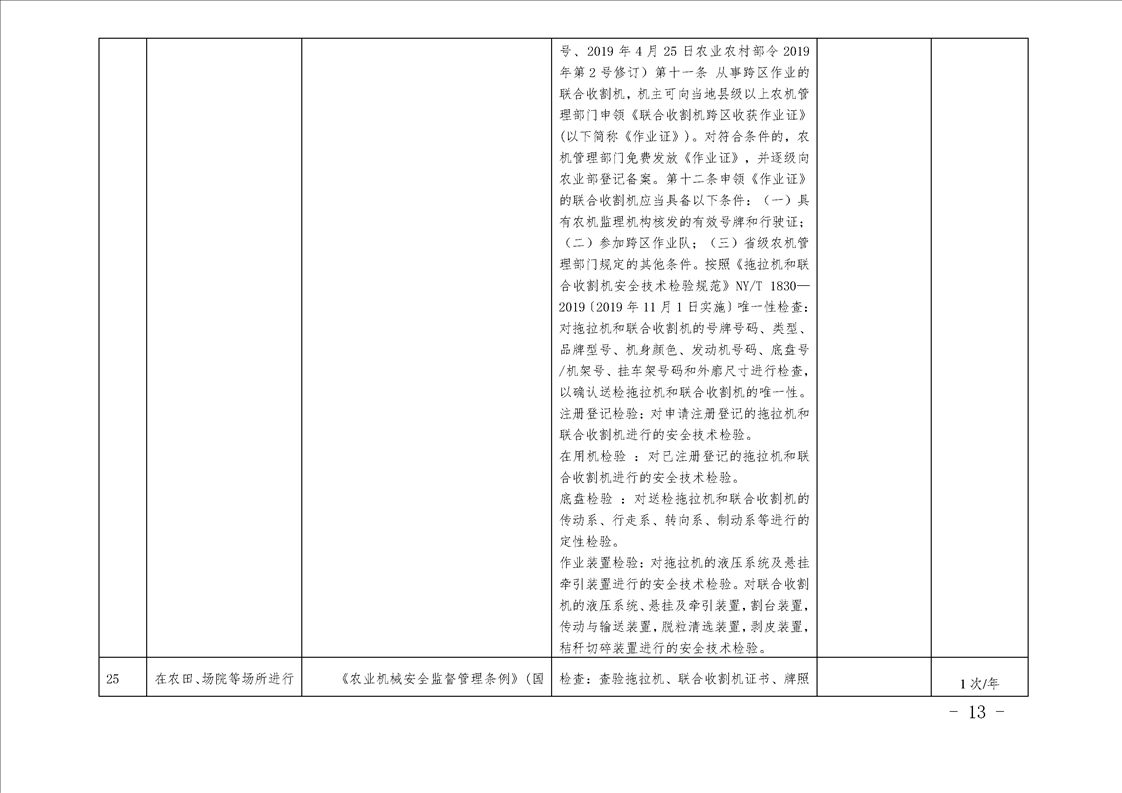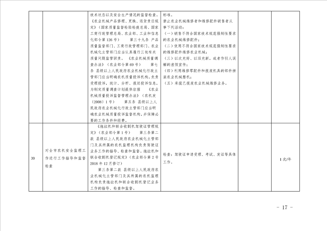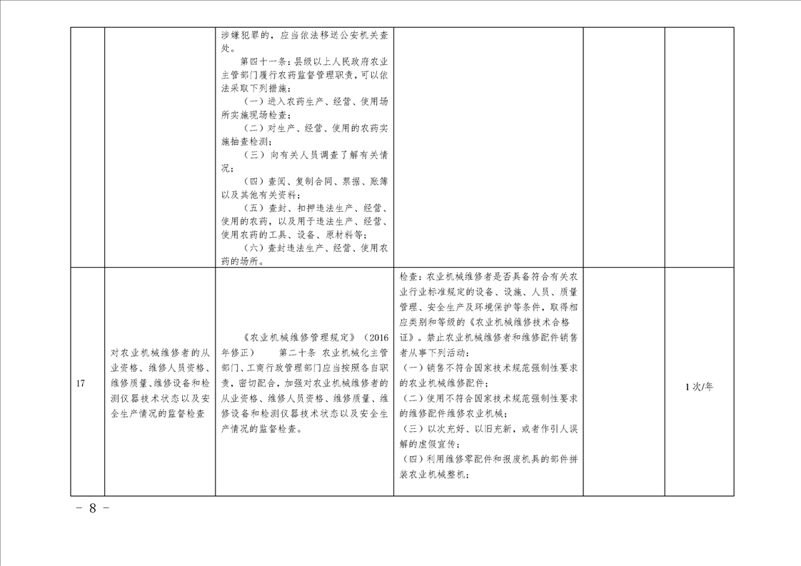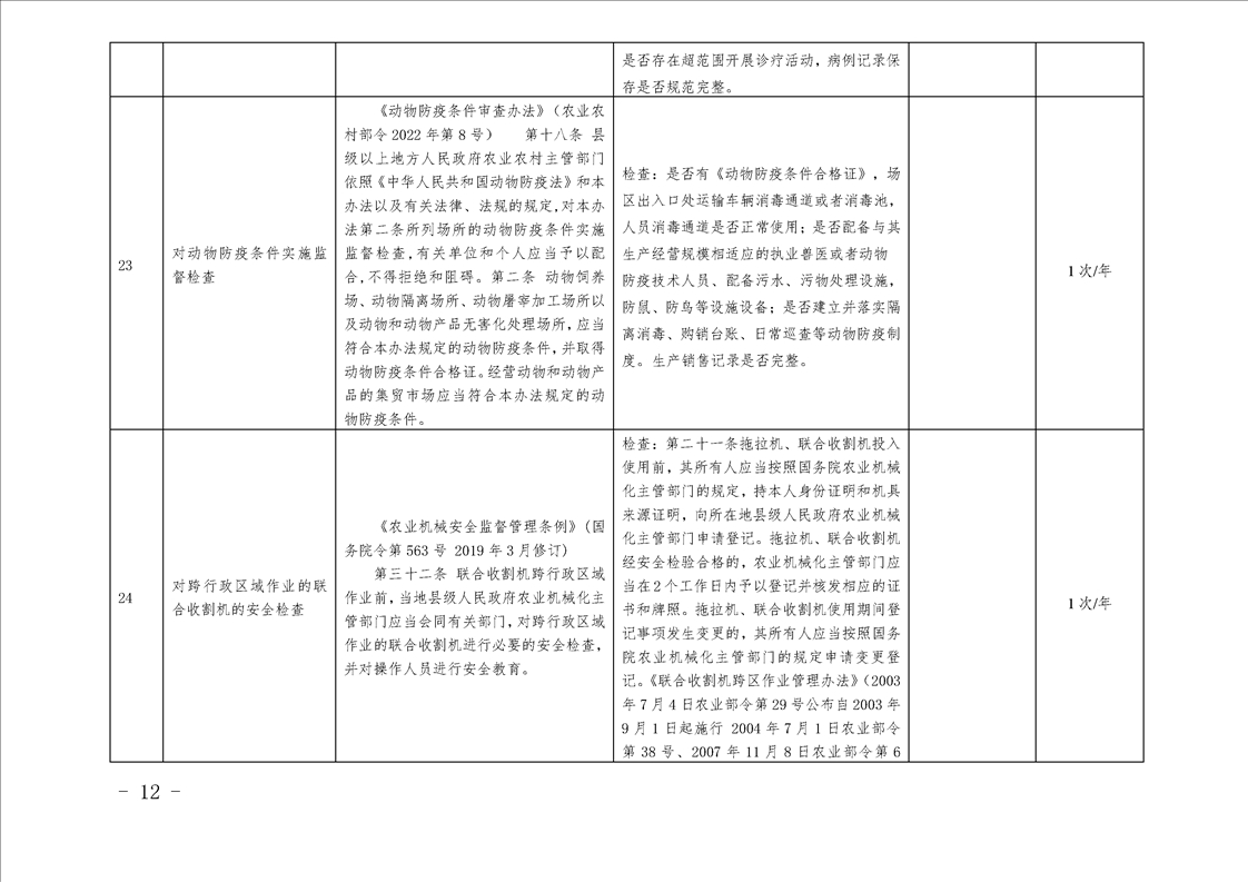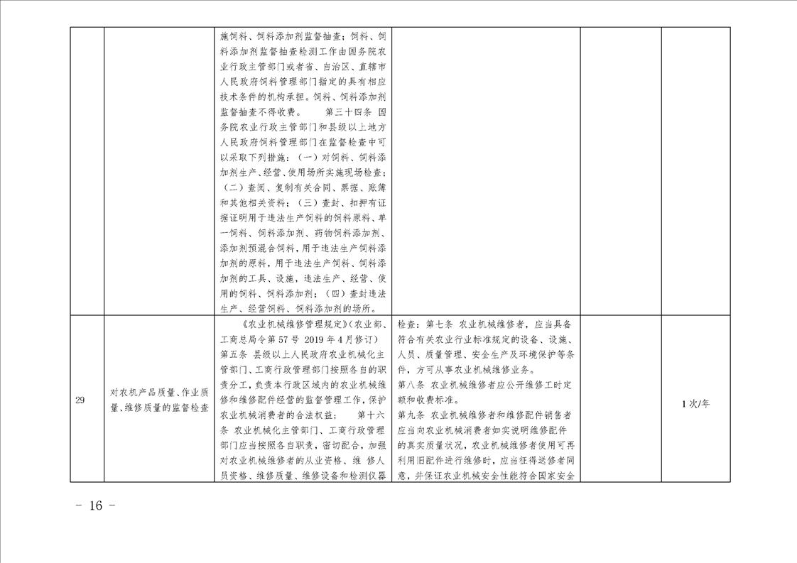 汉中市农业农村局行政检查事项目录